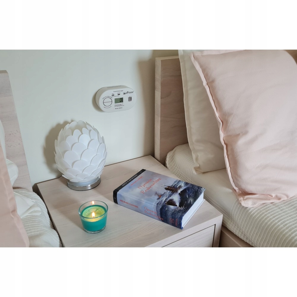 Благодаря специально разработанному корпусу датчик можно не только крепить на стену, но и размещать на плоской поверхности, например, на тумбочке возле кровати. Через 10 лет после включения питания датчик напомнит о необходимости замены устройства.