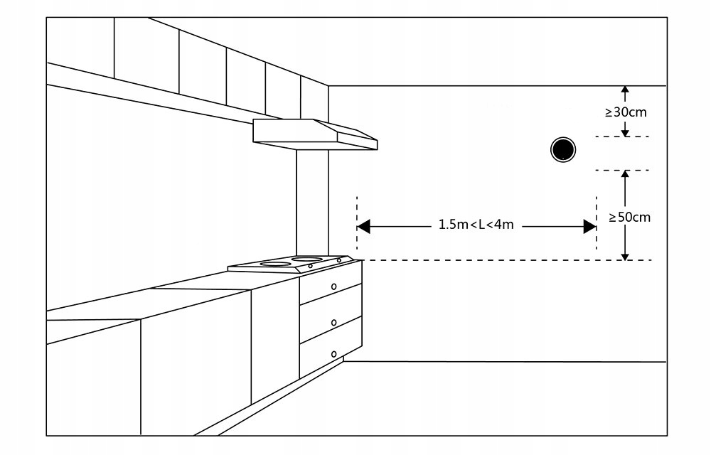 - b = 1,5-4 м; максимум Расстояние от потенциального источника природного газа (метана), например Газовая кухня, газомер и т. Д.