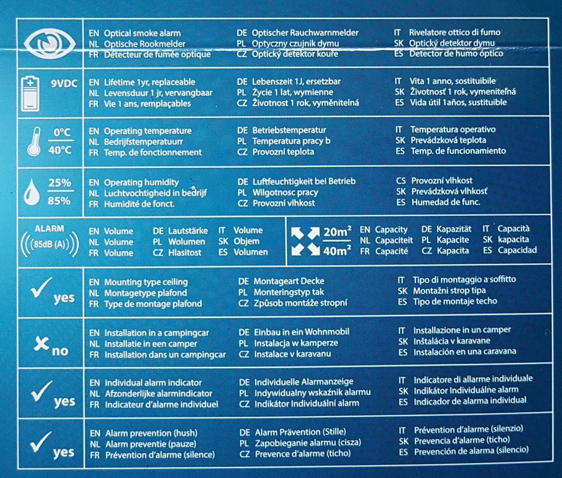 - Датчик издает звук громкостью 85 дБ, который поставит вас на ноги.