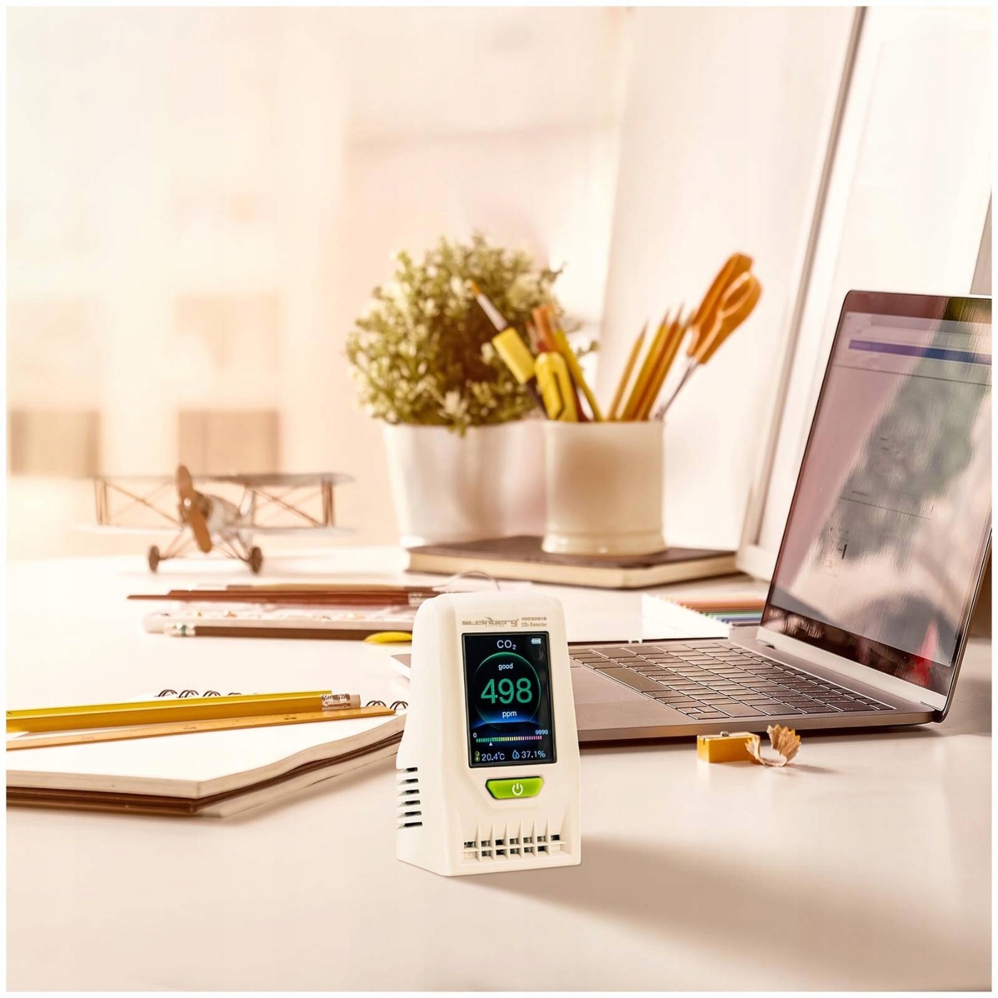 Люди дышат, машины выделяют пар, и то и другое производит углекислый газ. То, что изначально звучит совершенно естественно, в избытке зачастую приводит к ущербу для здоровья. Измеритель CO2 от Steinberg Systems, эксперта в области измерительных технологий, покажет вам, насколько велико ваше загрязнение CO2. Вы также узнаете значения температуры и влажности, а также дату и текущее время.