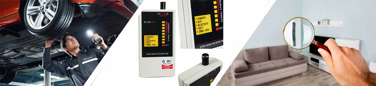 Детектор RF-950 — это устройство, которое легко позволит вам обнаружить и найти большинство из доступных на рынке активных шпионских устройств, например: