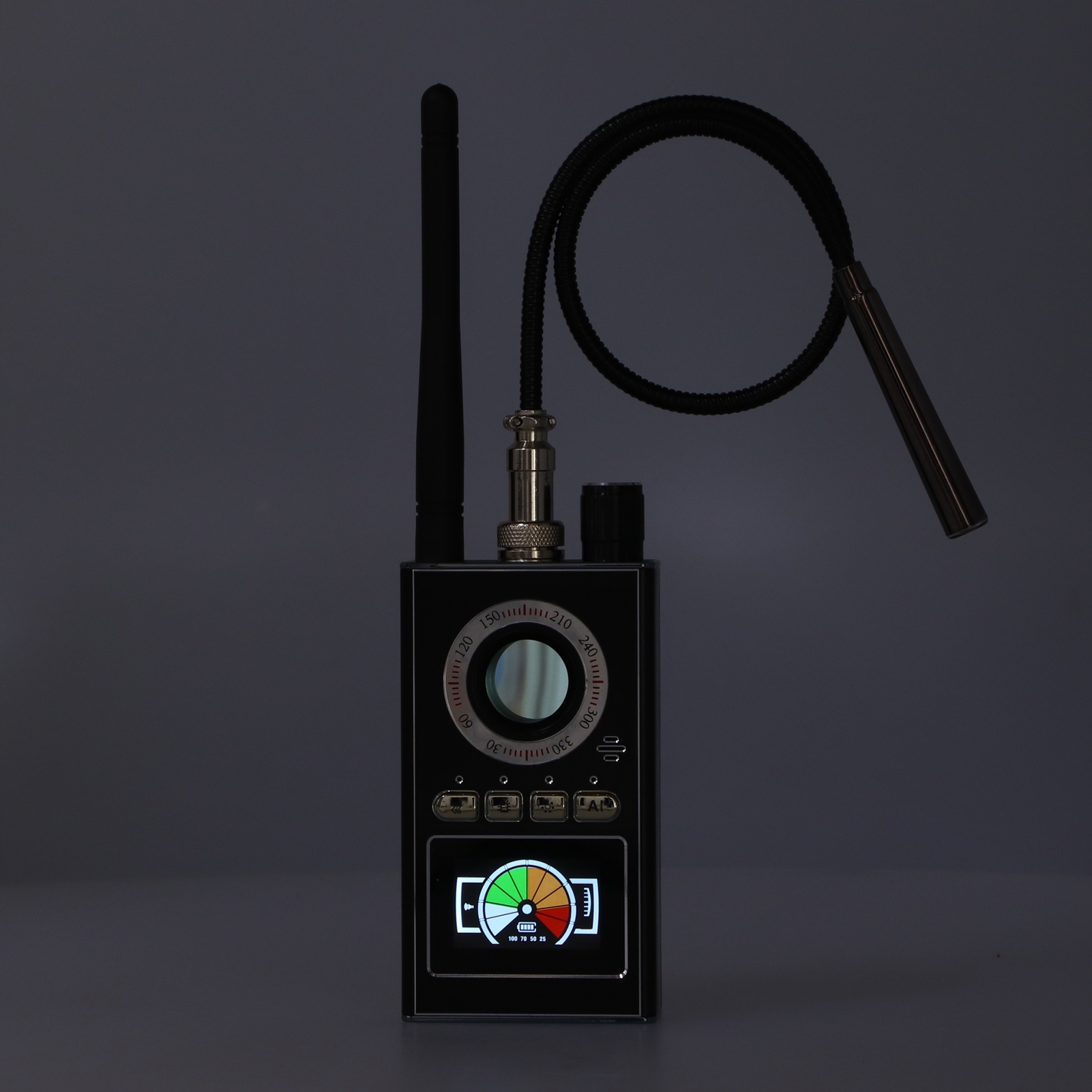 1. Детектор имеет интеллектуальный режим памяти. В подозрительной обстановке устройство включится автоматически, если сигнал появится выше восьмого уровня. 2. Оборудование использует американскую военную технологию, встроенный высокочувствительный интеллектуальный чип, используя специальный фильтр в сочетании с инфракрасным светом, может определять местоположение скрытых снимков или камер. 3, интеллектуальное обнаружение беспроводных сигналов. Когда беспроводные GPS-камеры и беспроводные мониторы излучают беспроводные сигналы, устройство может быстро захватывать сигналы, интеллектуально анализируя местоположение и расстояние до источника сигнала. 4, антенна с высоким коэффициентом усиления, более быстрое распространение сигнала. Полнодиапазонная антенна с высоким коэффициентом усиления в сочетании с радиоволновым чипом обеспечивает более быстрый поисковый сигнал, более сильную защиту от помех, обеспечивает более точное расстояние по азимуту. 5. Обнаружение сильного магнитного поля разделено на сетки, а обнаружение сигнала разделено на сетки. Не пропустите ни одного поворота, просто заглядывайте туда, где он есть. 6, инфракрасное сканирование, свет сильнее и расстояние больше, сильный свет бесстрашен, и вы можете использовать его днем и ночью, в режиме ожидания или в удаленном режиме.