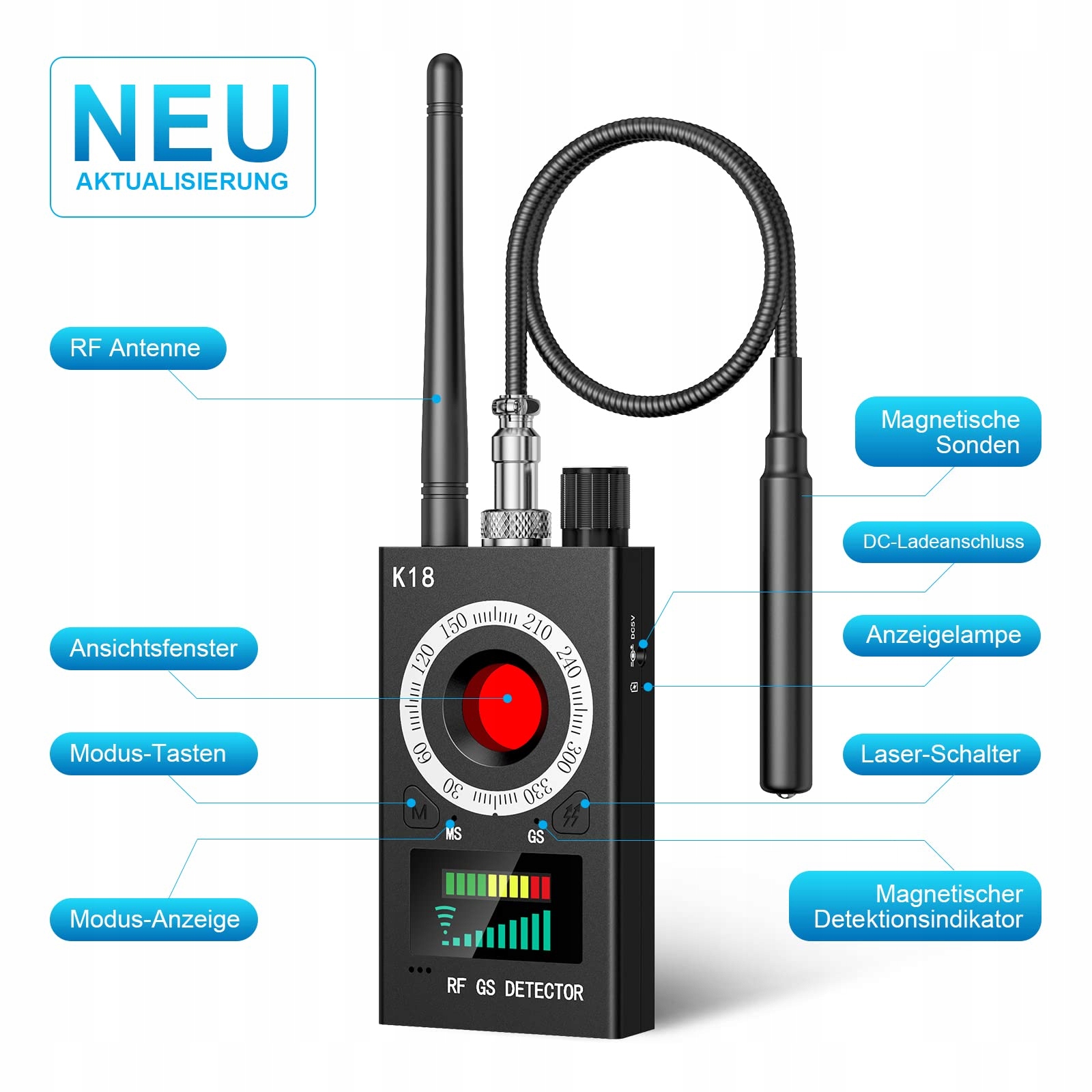 ➤【Многофункциональное обнаружение】 Этот детектор обеспечивает многофункциональное обнаружение, включая лазер. сканирование, обнаружение беспроводного радиочастотного сигнала и обнаружение сигнала магнитного поля. Благодаря высокой чувствительности и широкому диапазону частот обнаружения он может точно обнаруживать беспроводные или проводные камеры наблюдения от 1,2 до 5,8G, GPS-локаторы, автомобильные локаторы, магнитные позиционеры и неисправности, неисправности SIM-карты мобильных телефонов 2G/3G/4G, различные прослушивания телефонных разговоров и другое. оборудование.