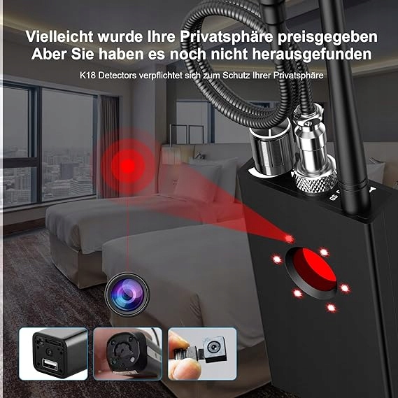 K18 оснащен функцией инфракрасного обнаружения, благодаря которой вы можете легко найти скрытые камеры. Просто включите инфракрасную функцию и начните сканирование вблизи глаз, что лучше работает в темноте. Простое управление (только кнопка переключения чувствительности), звуковая и оптическая сигнализация, точная и надежная.
