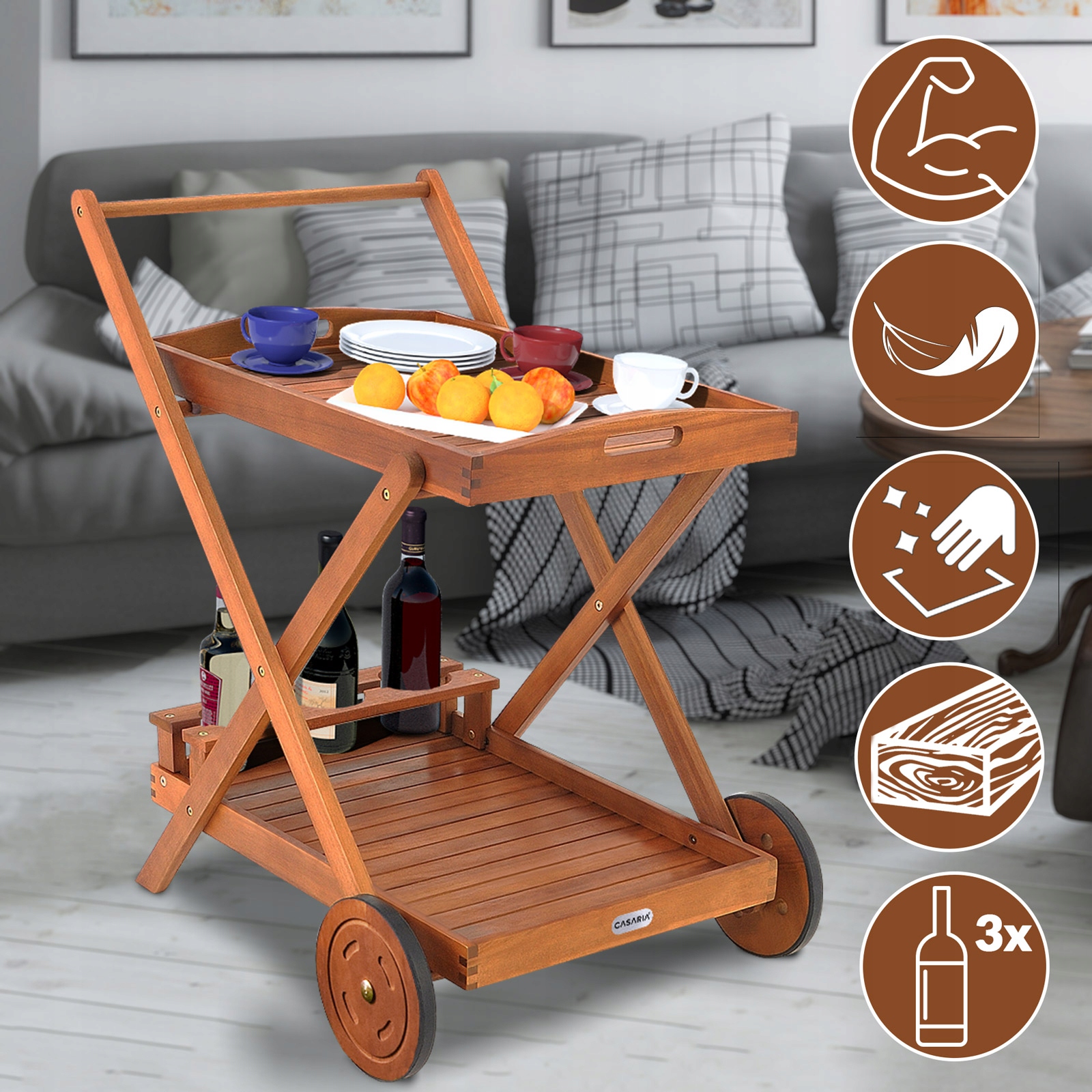 сервировочная тележка из акации CASARIA от Deuba, сертифицирована FSC и устойчива к атмосферным воздействиям.