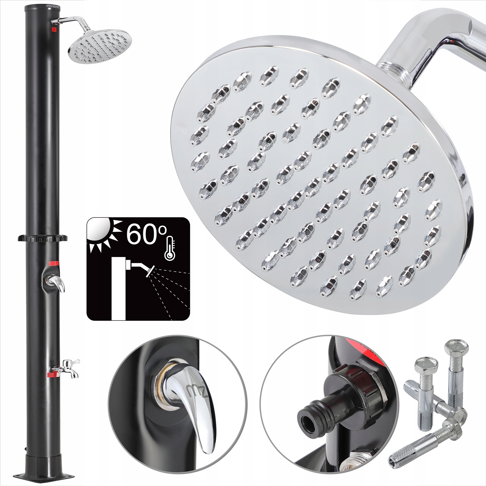 Солнечный душ не только обеспечивает приятный душ, но и экономит электроэнергию. При оптимальном солнечном свете вода может нагреваться до 60° без электричества, достаточно лишь подключить садовый шланг.