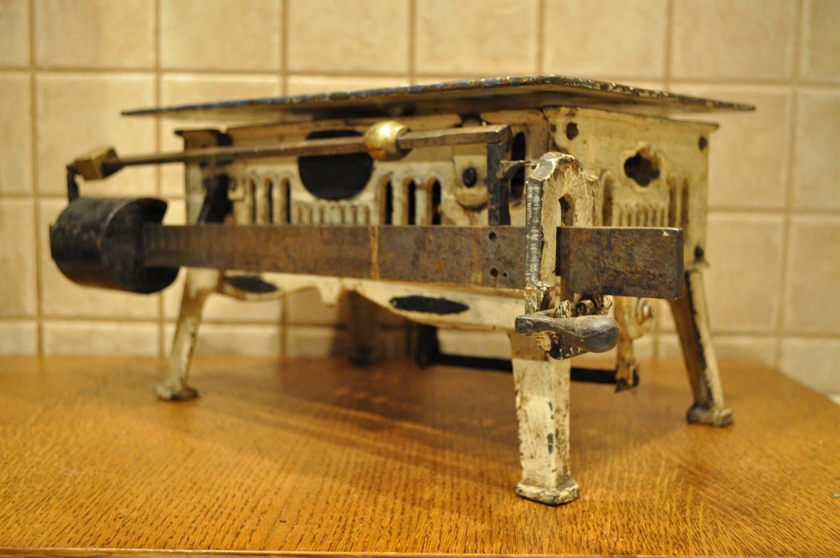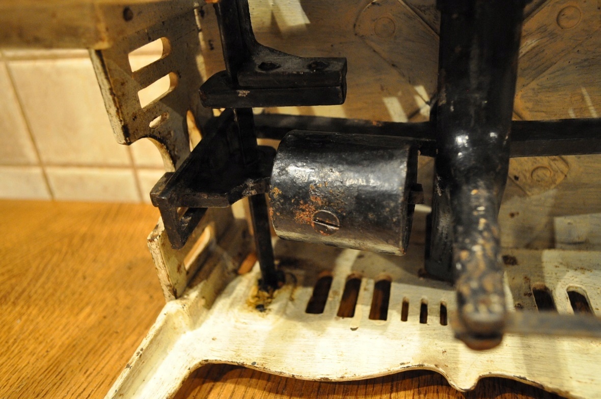 Регулировка чугунным противовесом.