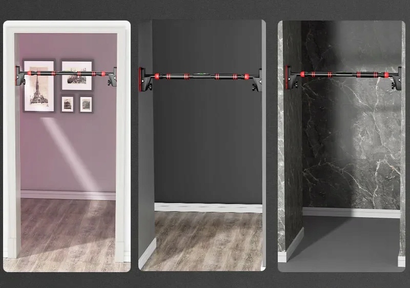 - Регулируемая длина: благодаря телескопической структуре, стержень имеет регулируемую длину в диапазоне от 74 до 100 см. Это делает его идеально подходящим для стандартных дверных рамков, что обеспечивает простую и быструю установку без необходимости бурения.