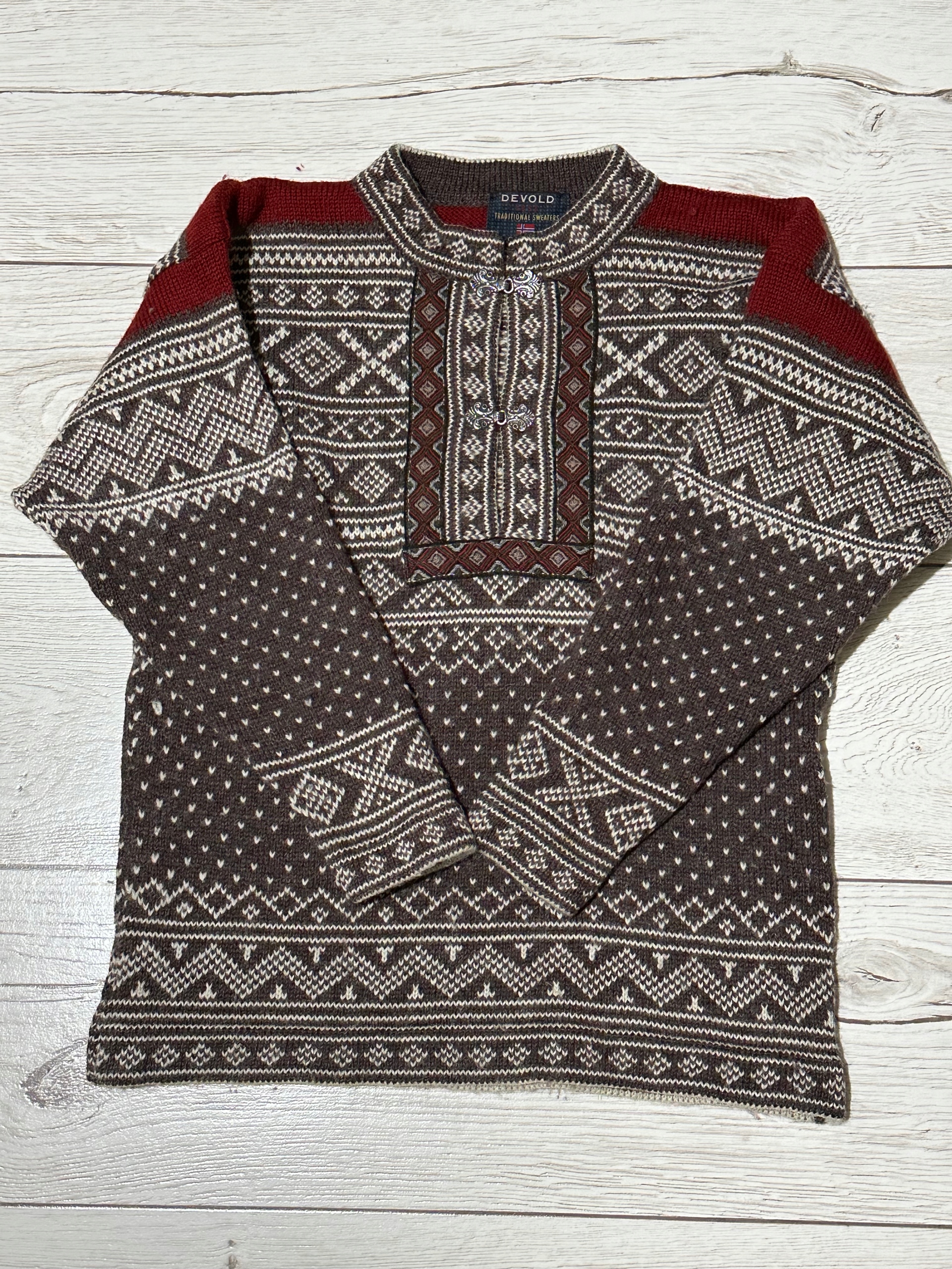 DEVOLD BY OLMES CARRETTI wełniany sweter skandynawski norweski góralski S