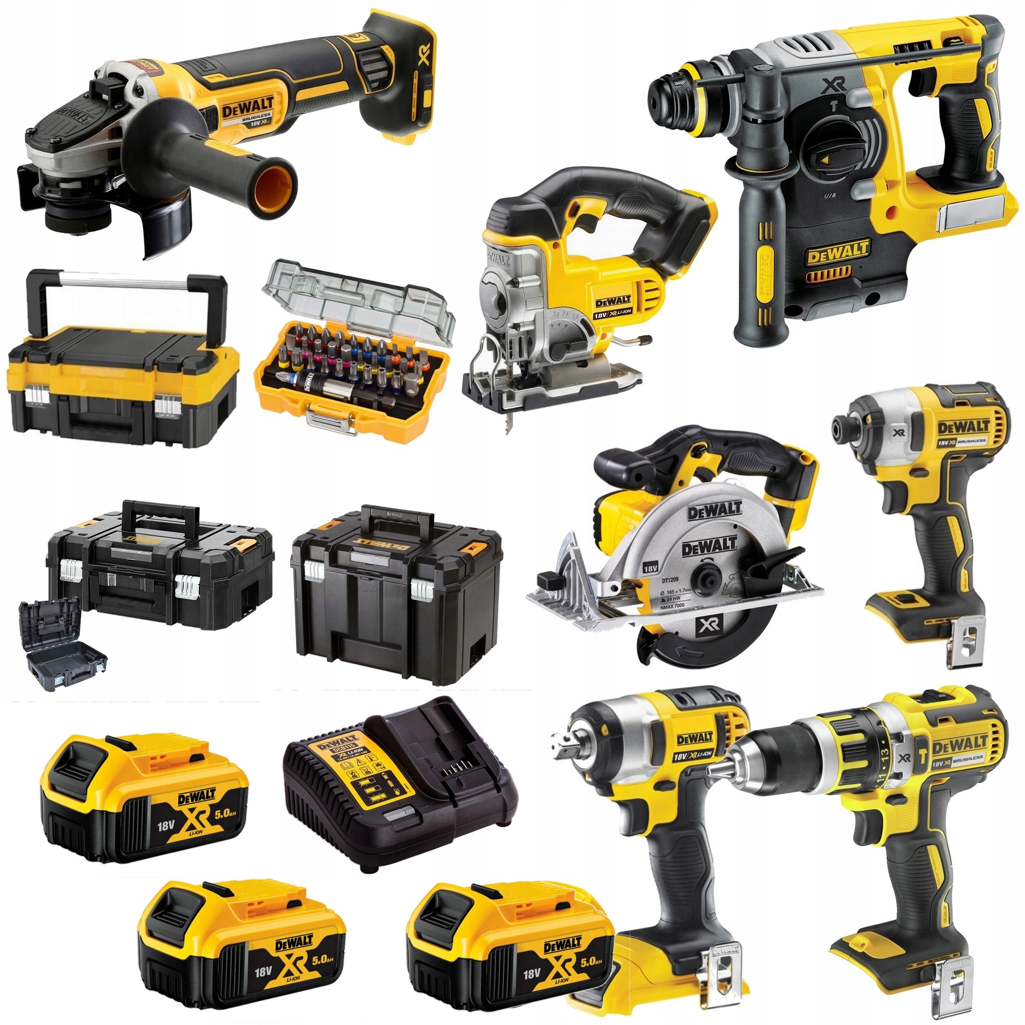 DEWALT COMBO НАБІР ІНСТРУМЕНТІВ 7 предметів 18V Батареї 5.0Ah
