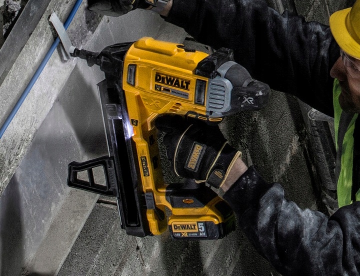 - Гиперзабиватель по бетону с литий-ионным аккумулятором XR емкостью 5,0 Ач, 18 В и бесщеточным двигателем, обеспечивающим увеличенное время работы и мощность для забивания более длинных гвоздей.