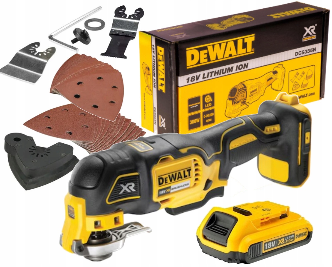 DEWALT ІНСТРУМЕНТ БАГАТОФУНКЦІОНАЛЬНИЙ ПРИСТРІЙ З АКСЕСУАРАМИ AKU 2AH DCS355D1