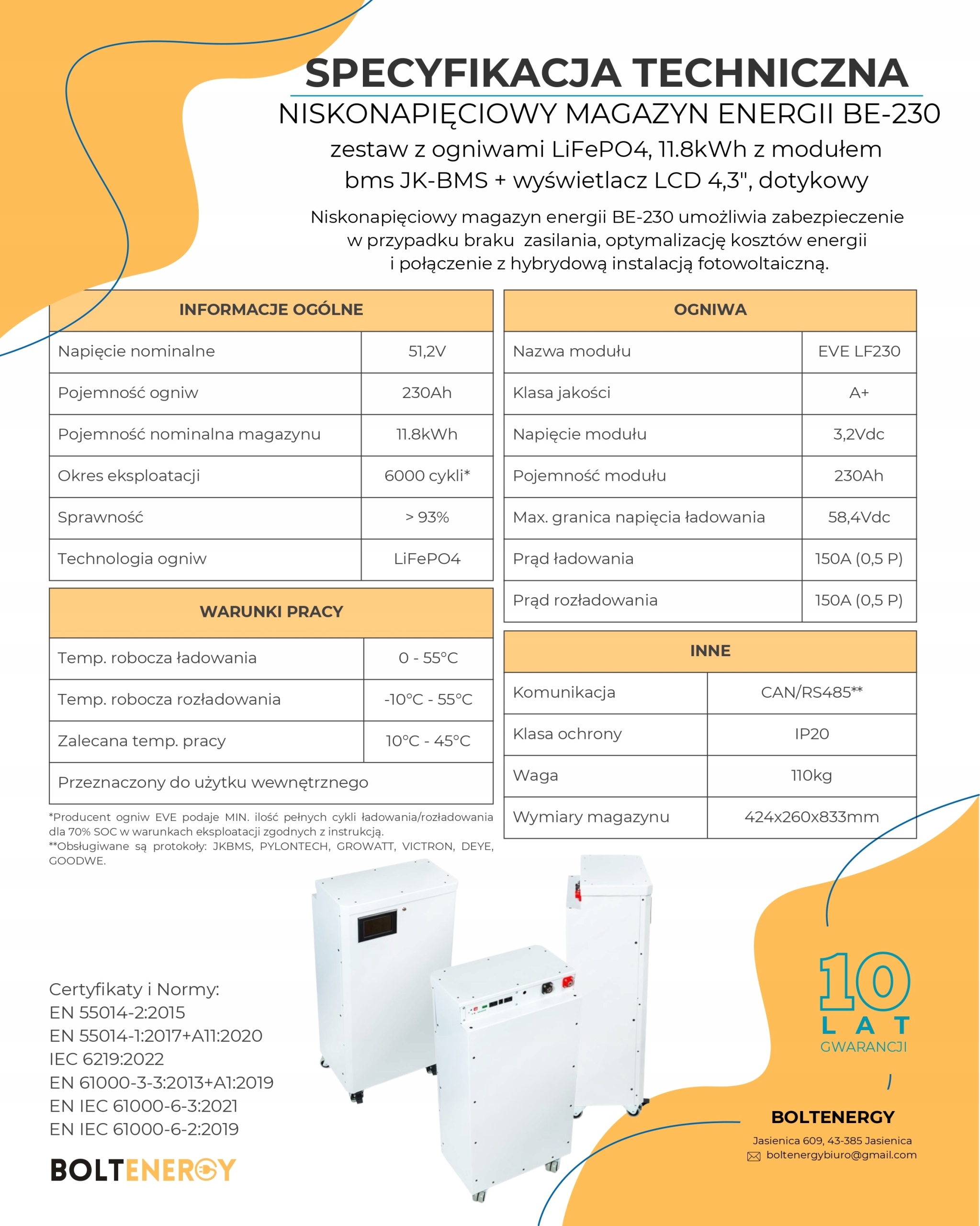 Современные и надежные склады Boltenergy Energy - спроектированные и произведенные в Польше для самого высокого качества и надежности. Наши журналы LifePo4 являются идеальным решением для домов и компаний, ищущих эффективные системы хранения энергии. На борту журнала есть 16 ячейки Eve Energy LifePo4, а также приличные проблемы с JK