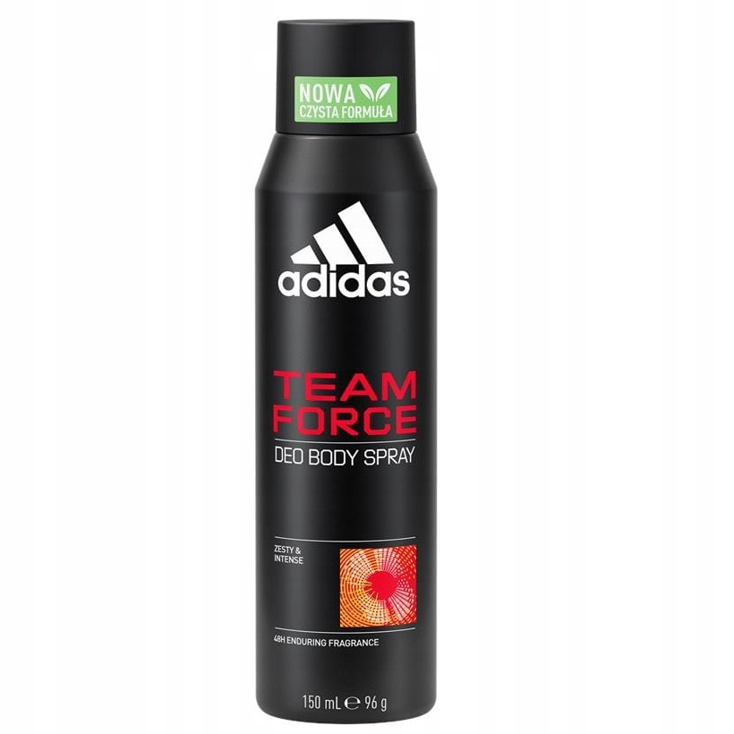 Дезодорант-спрей для тела Adidas Team Force с бодрящим ароматом, который сохраняется в течение 48 часов и дает ощущение принадлежности к команде. Веганская формула не оставляет белых следов на одежде.