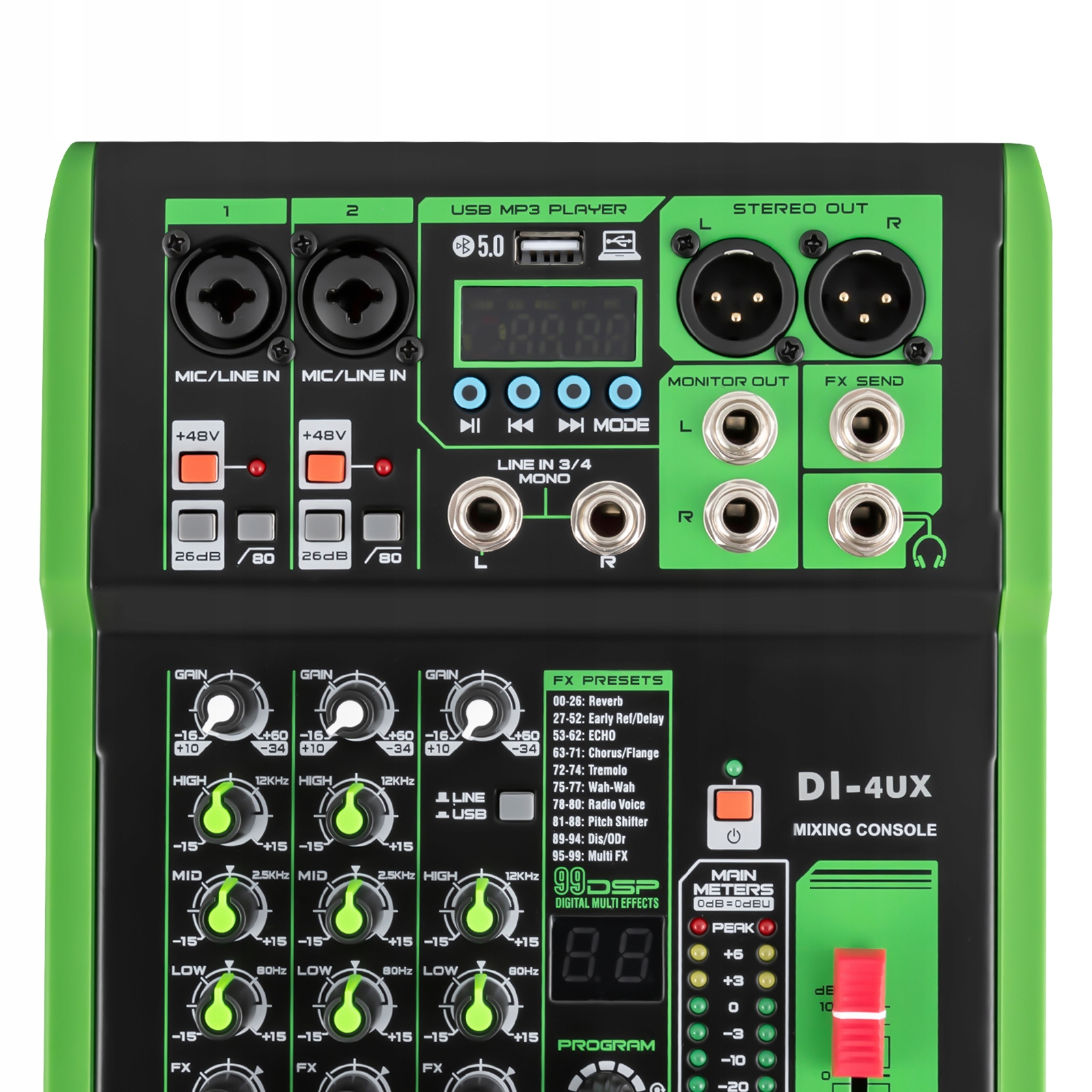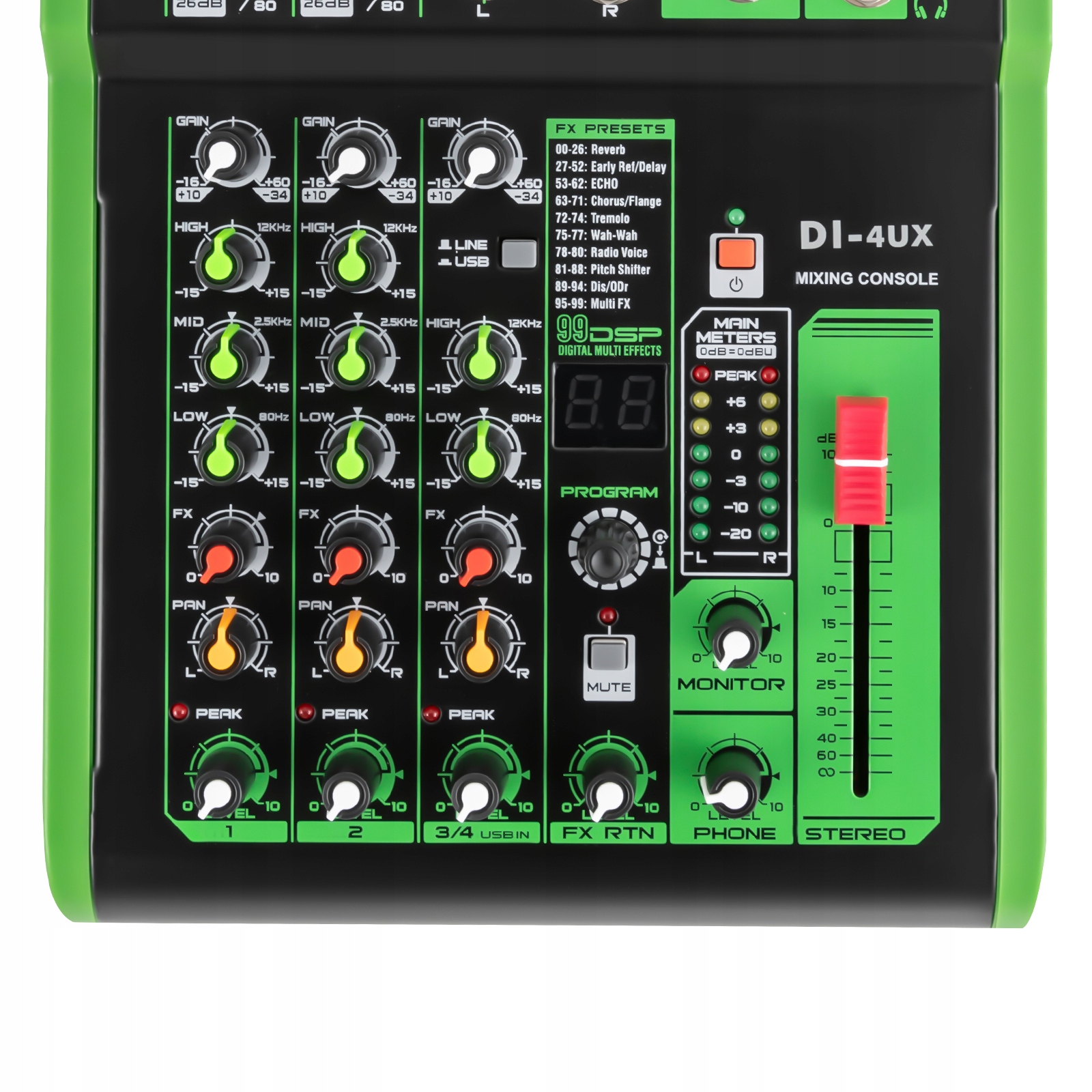 DI-4UX ПРОФЕСІЙНИЙ 4-КАНАЛЬНИЙ АУДІО МІКШЕР З 99 DSP USB MP3 48V