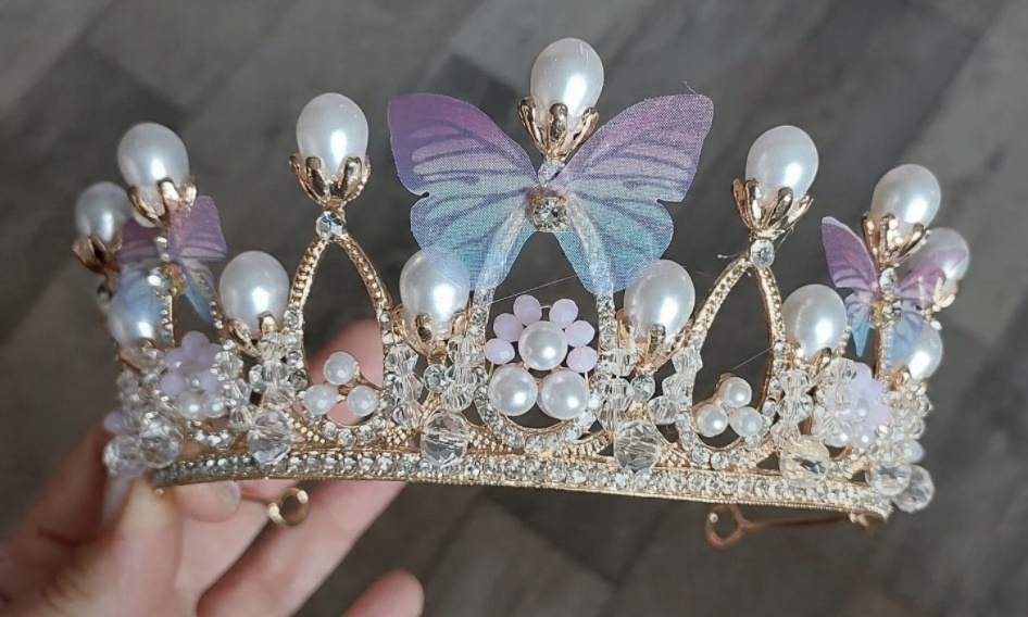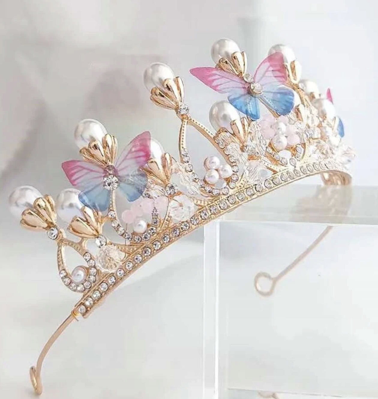 Діадема із золотою короною з метеликами для вечірки на честь дня народження
