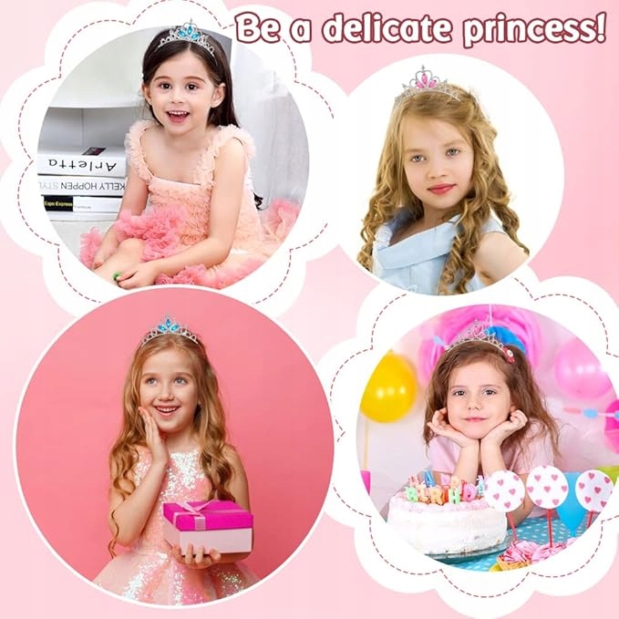 Высококачественная корона изготовлена из блестящих камней и прочного сплава, красивая и практичная. С блестящей тиарой-короной для девочек ваши девочки сразу же после ношения станут принцессой!