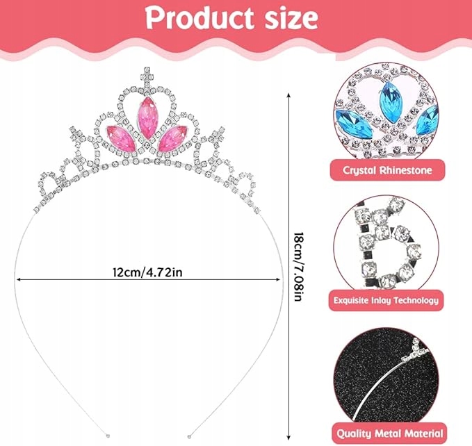 Изысканная и элегантная хрустальная тиара для девочек: множество кристаллов прекрасно инкрустируют хрустальную корону для детей, корону принцессы для девочек очень нежный и красивый при свете. Дизайн короны с розовыми кристаллами добавляет очарования. Диадема идеальна для девичьей вечеринки!