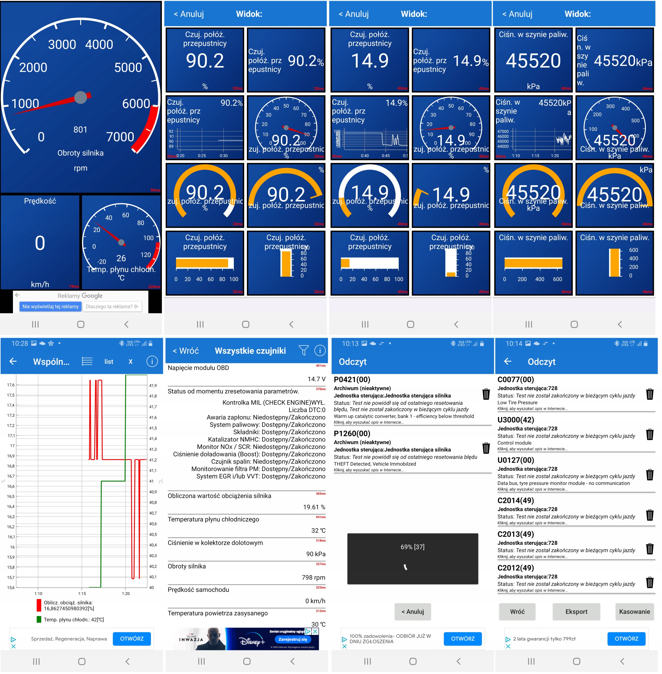Благодаря использованию новейшего чипа 25K80 интерфейс легко и очень быстро считывает текущие данные с датчиков, таких как: