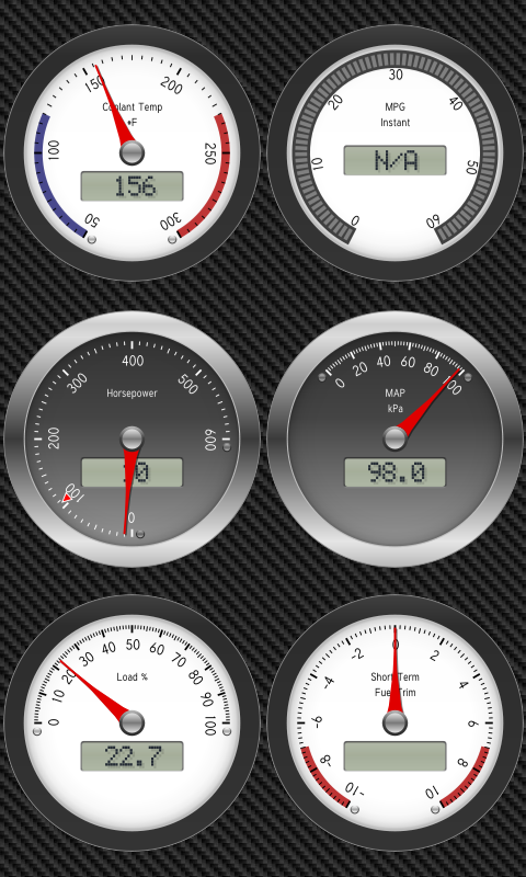 Галерея элементов содержит примеры снимков экрана из бесплатных приложений, поддерживающих ELM 327.