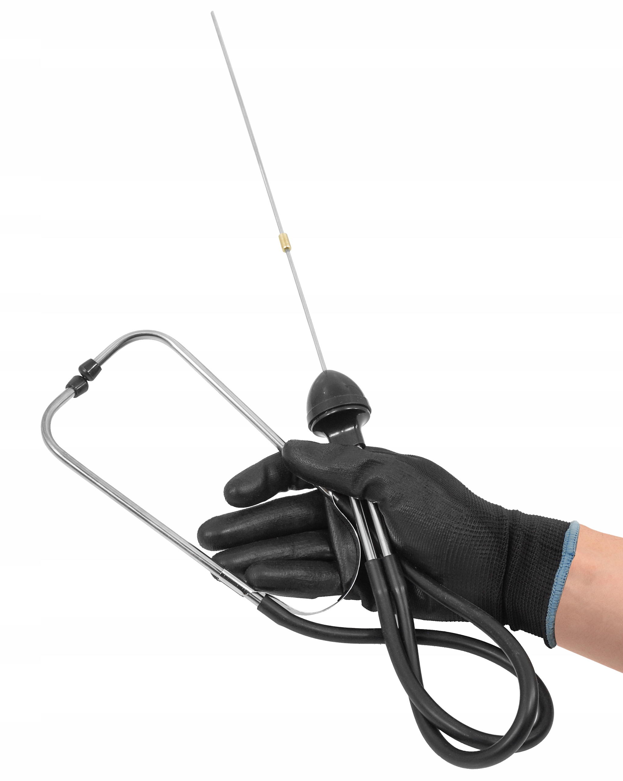 Стетоскоп для мастерских, предназначенный для проверки работы двигателя, компонентов подвески, коробки передач и т. д. Этот тип устройства позволяет определить место возможного повреждения путем локального прослушивания отдельных компонентов.