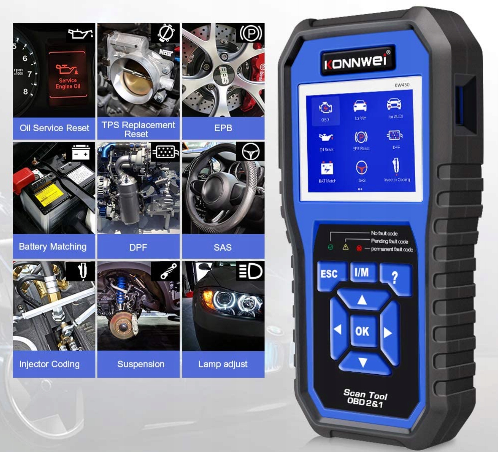 KW450, помимо полной поддержки всех систем, годов и моделей автомобилей VAG