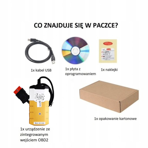Устройство с интегрированным входом OBD2, USB -кабель, CD 2020.23 наклейки, картонная упаковка