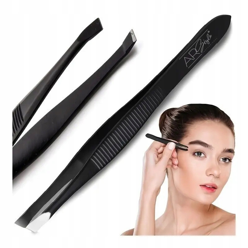 Диагональный пинцет ARSTYLE BLACK для бровей и ресниц