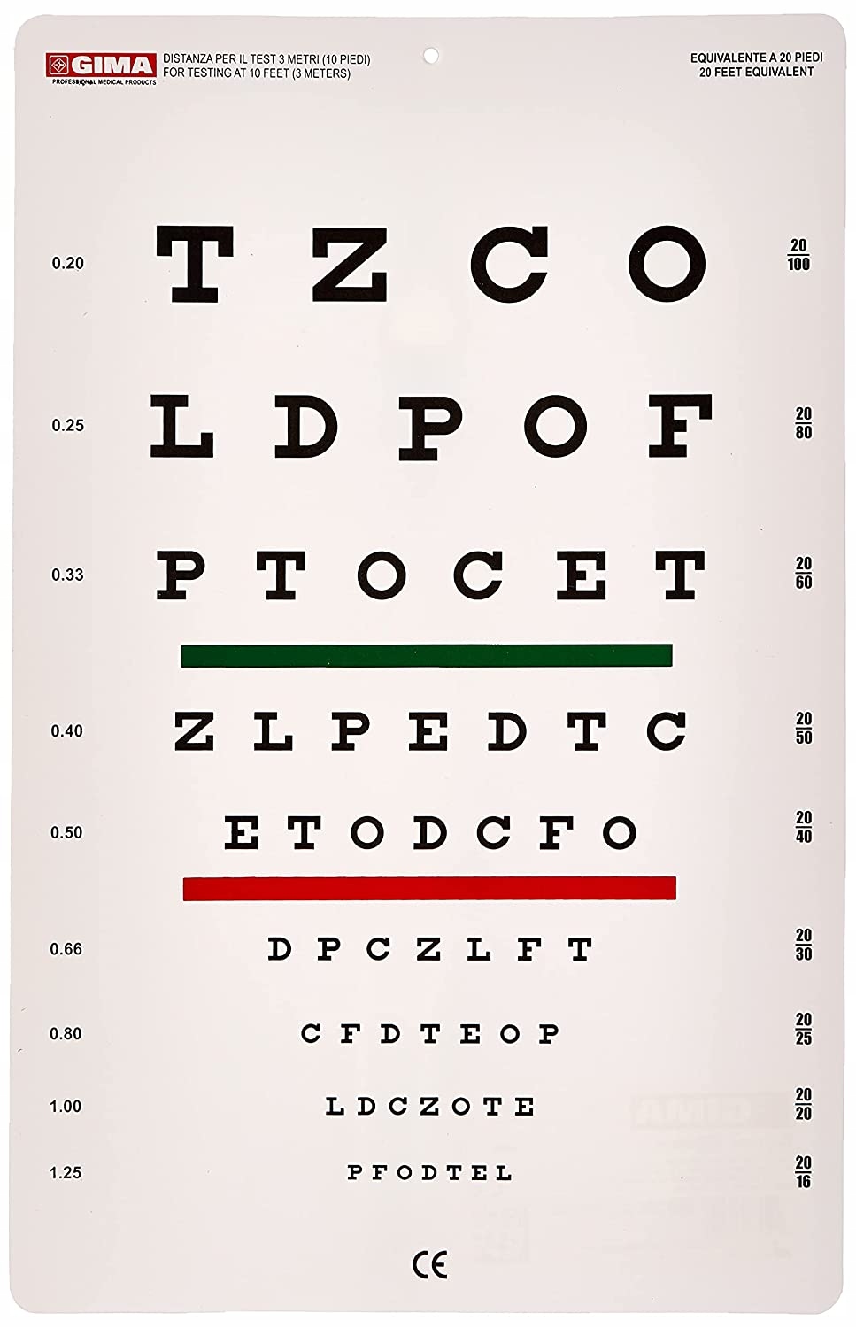 - Тест на зрение вдаль для проверки остроты зрения на расстоянии от 3 м до 10 футов.