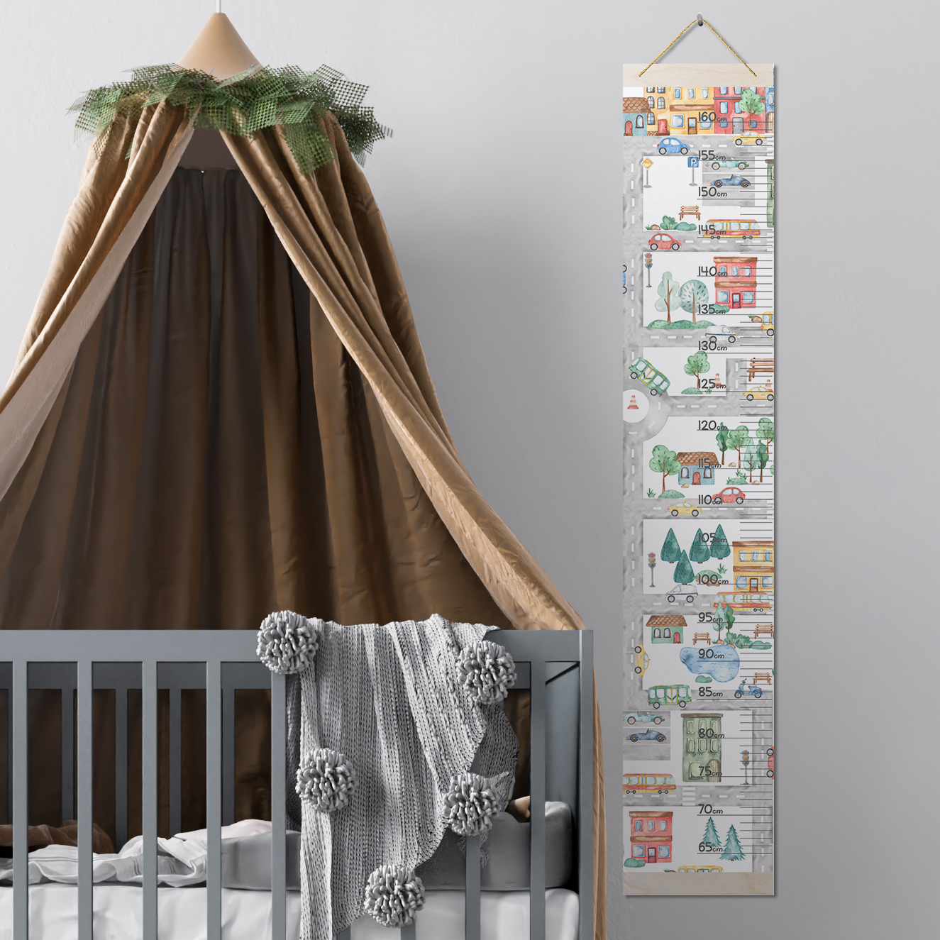 Таблица роста с городским мотивом – универсальное украшение для комнаты мальчика. Такой мерный стаканчик не только украсит комнату, но и доставит массу удовольствия вашему ребенку и простимулирует его воображение.