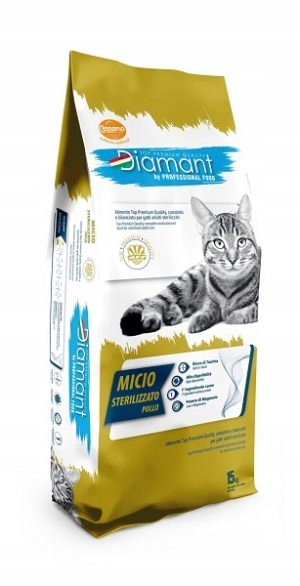 Диамант Micio - это самая высокая качественная, полная и сбалансированная пища для взрослых кошек после стерилизации. Содержание с низким содержанием жира и калорий и добавление L-карнитина делает его идеальным для контроля веса тела у обработанных кошек