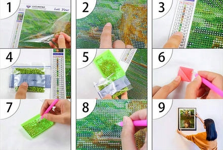 набор алмазной вышивки, также известный как бриллиантовая живопись. Эта техника создания мозаичного изображения с маленькими алмазными кристаллами стала очень популярной среди энтузиастов и художников из ручной работы. На этом аукционе вы найдете полный набор, который позволит вам запустить собственное приключение с Diamond Embroidery. h2>