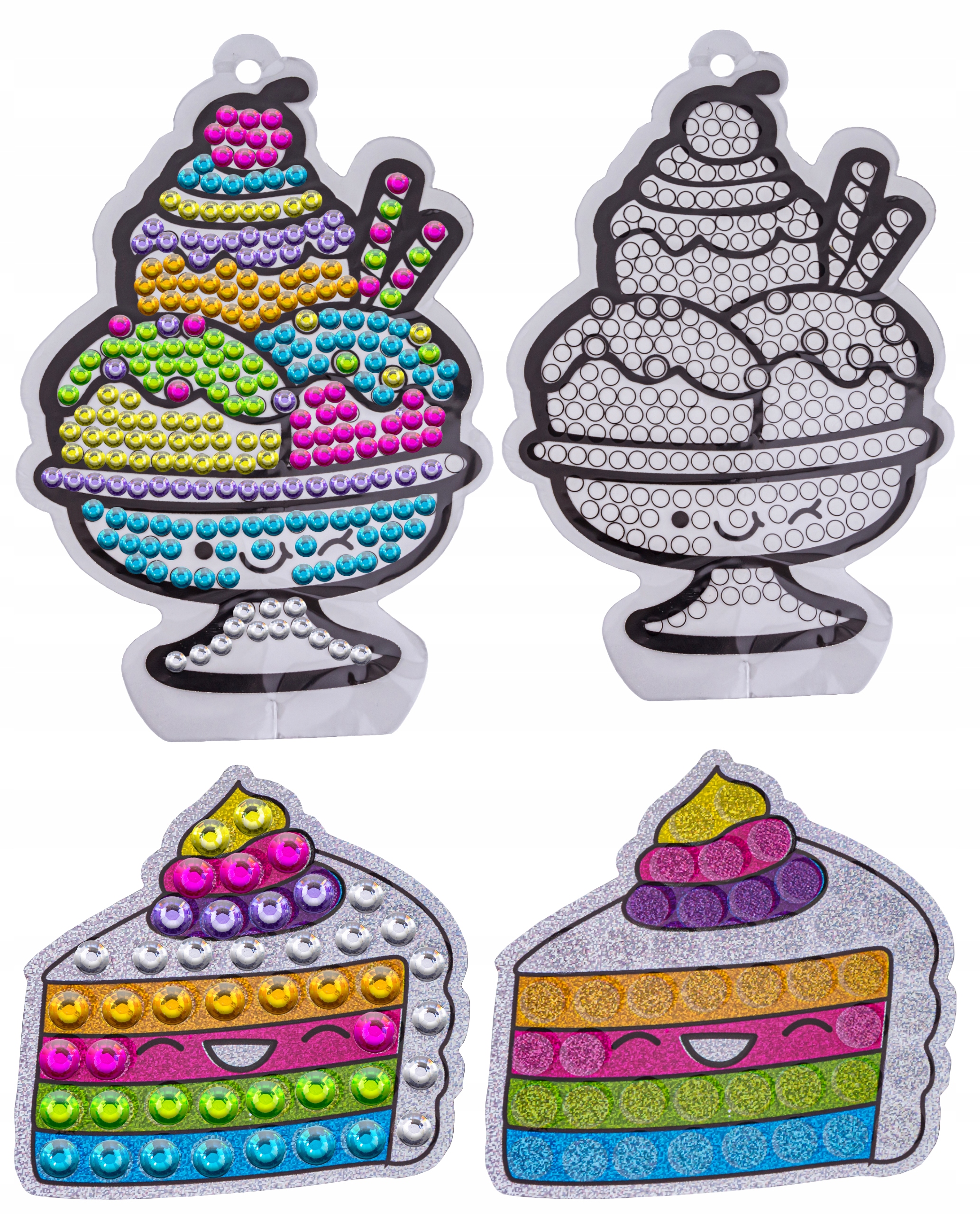 Предлагаемый набор включает в себя все необходимые элементы, чтобы сделать готовые головоломки в тему сладостей :) Веселье состоит в том, чтобы поставить поля на соответствующие, сказочно красочные алмазы на стикеры.