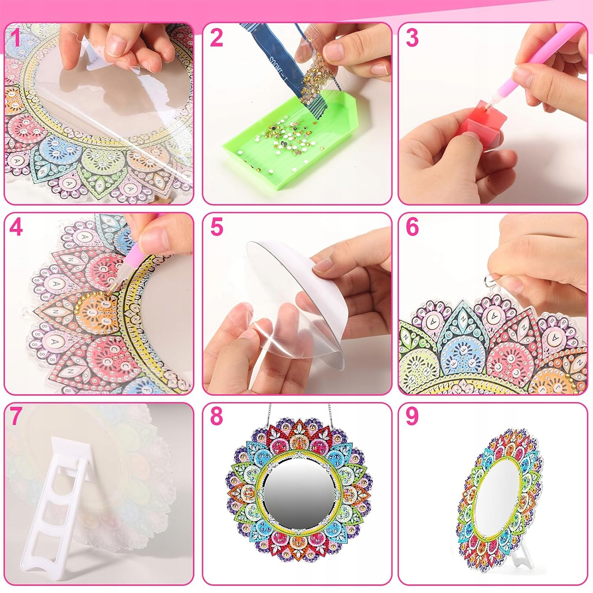 Набор зеркал для детей своими руками, идеально подходит в качестве подарка для девочек в возрасте 6, 7, 8, 9, 10, 11, 12 лет. Зеркала являются неотъемлемой частью повседневной жизни каждого человека, такой как одевание, нанесение макияжа, бритье и т. д. Наше зеркало для макияжа с алмазной росписью сочетает в себе стили ромба, зеркала и мандалы, создавая изысканный и модный образ. Вы можете использовать его не только для повседневного взгляда в зеркало, но и для украшения и т. д.