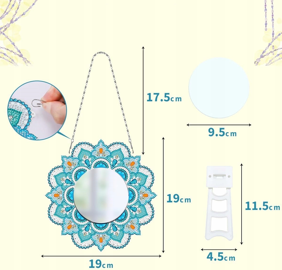 - Набор ручной работы с блестящими и красивыми бриллиантовыми бусинами. Легко для новичков. Его можно использовать как настенное или настольное зеркало. Диаметр примерно 19 см. Красивый узор мандалы добавит блеска вашему интерьеру.