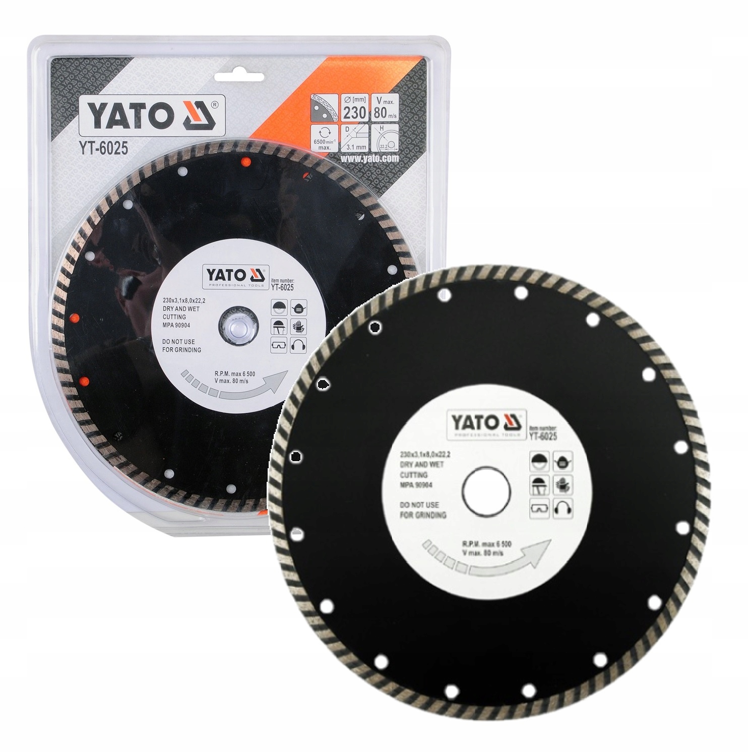 сегмент алмазного экрана Turbo для резки каменного кирпичного гранитного бетонной керамики 230 мм 22,2 мм Yato YT-6025