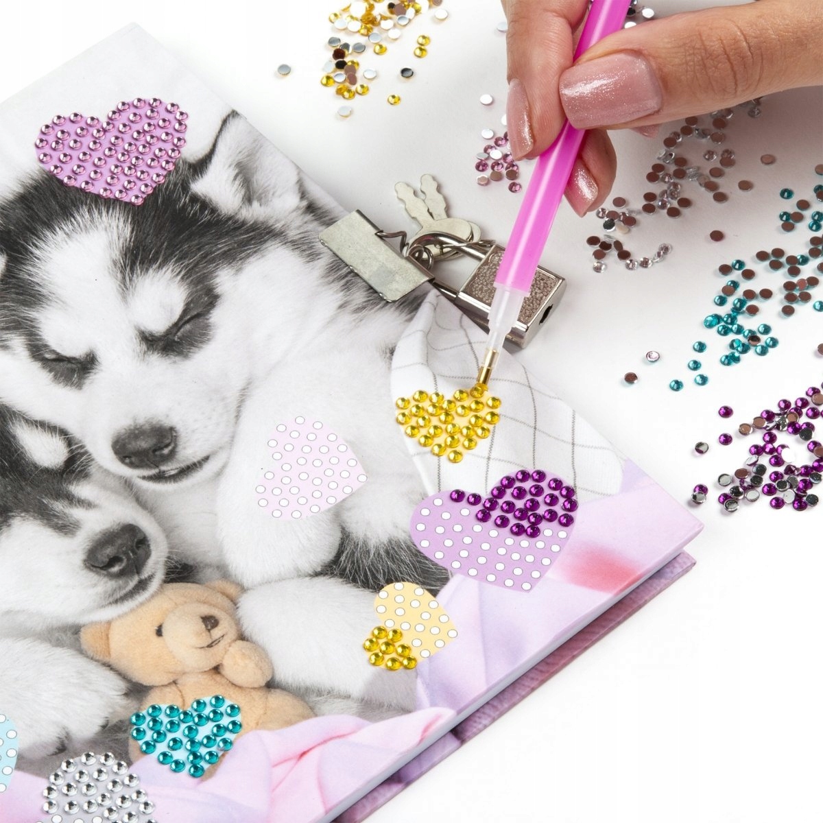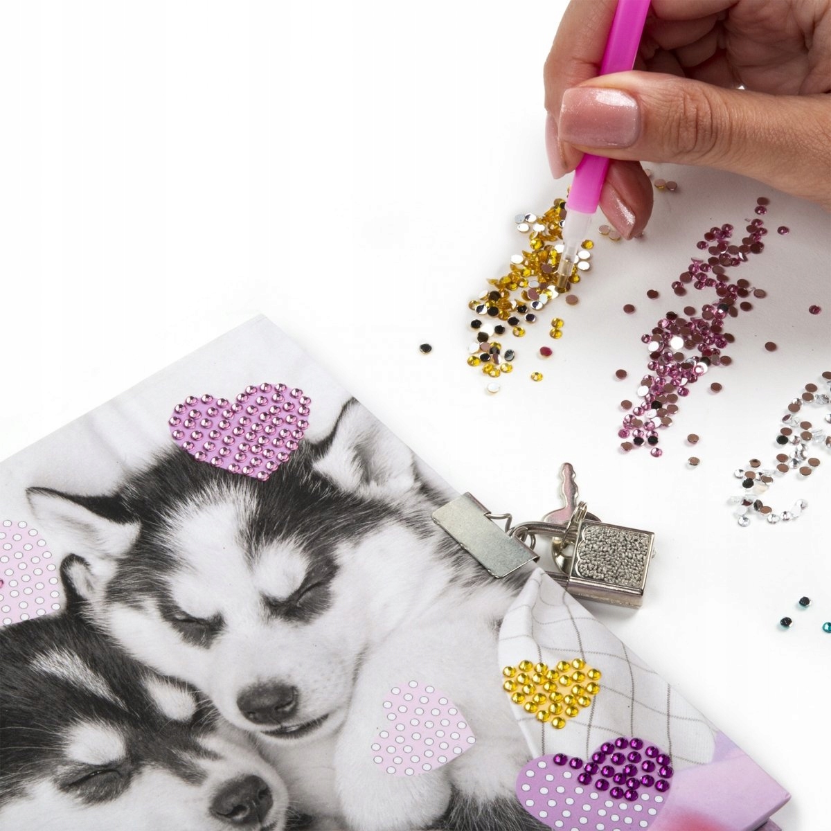 Дневник с замок и ручка 3 цвета + алмазные наклейки Cleo & Frank Pieski (DPKD3KCF38)