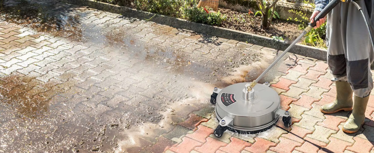 Профессиональная щетка для очистки террасов, внутреннего дворика и мощных камней, созданных для устройств с высоким давлением с потоком воды от 450 л/ч до 1800 л стабильности во время работы.