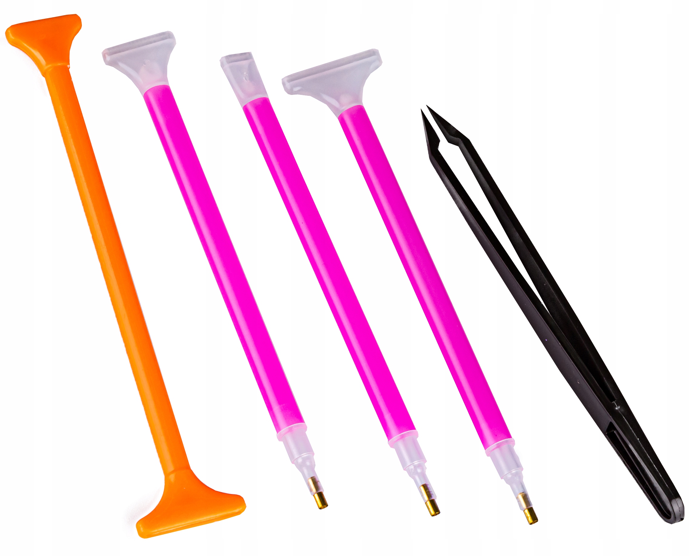 В набор также входят четыре разных типа ручек для нанесения ромбов. Они имеют разные концовки, что позволяет одновременно наносить на канву разное количество бисерин. В случае плохо приклеенного ромба его можно легко удалить с помощью пинцета, входящего в комплект.