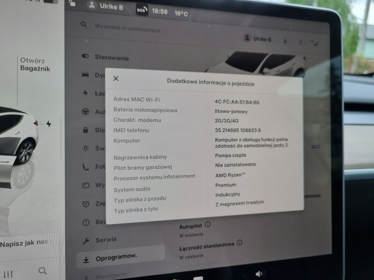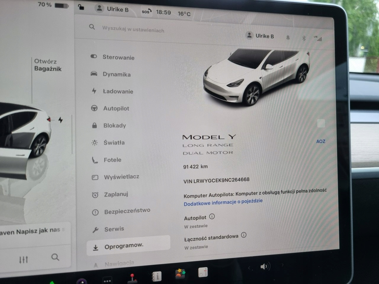 Tesla y lr Диапазон 542 км Autopilot 19 "SOH92%