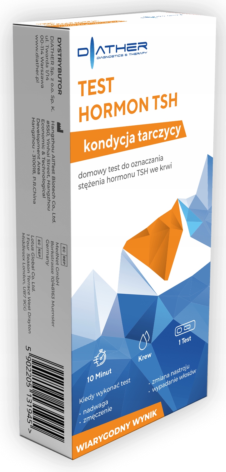 Домашний ТТГ Diather TEST – это тест, позволяющий определить уровень гормона ТТГ. Его проводят при подозрении на гипотиреоз, чтобы иметь возможность провести соответствующее лечение. Тест ТТГ можно провести дома, определив концентрацию гормона в образце крови, взятом из пальца. Как и подобает диагностическим тестам Диатера, домашний ТТГ-ТЕСТ доступен по разумной цене и без рецепта. Мы призываем Вас не отказываться от самодиагностики и при наличии показаний измерять концентрацию гормона ТТГ в крови. В нашем предложении есть и другие тесты, предназначенные для домашней диагностики. Это включает в себя: Тест на Helicobacter pylori, тест на холестерин, анализ кала на скрытую кровь и многие другие.