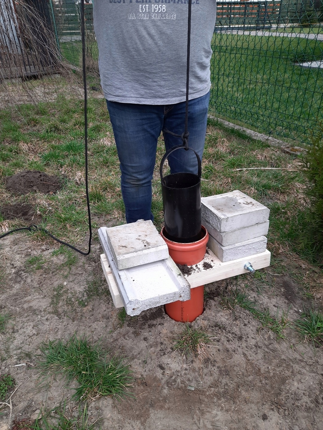 Для увеличения нагрузки на подставки можно положить кирпичи, тротуарную плитку или что-нибудь еще. Во время сгущения труба сама падает под тяжестью штоков.