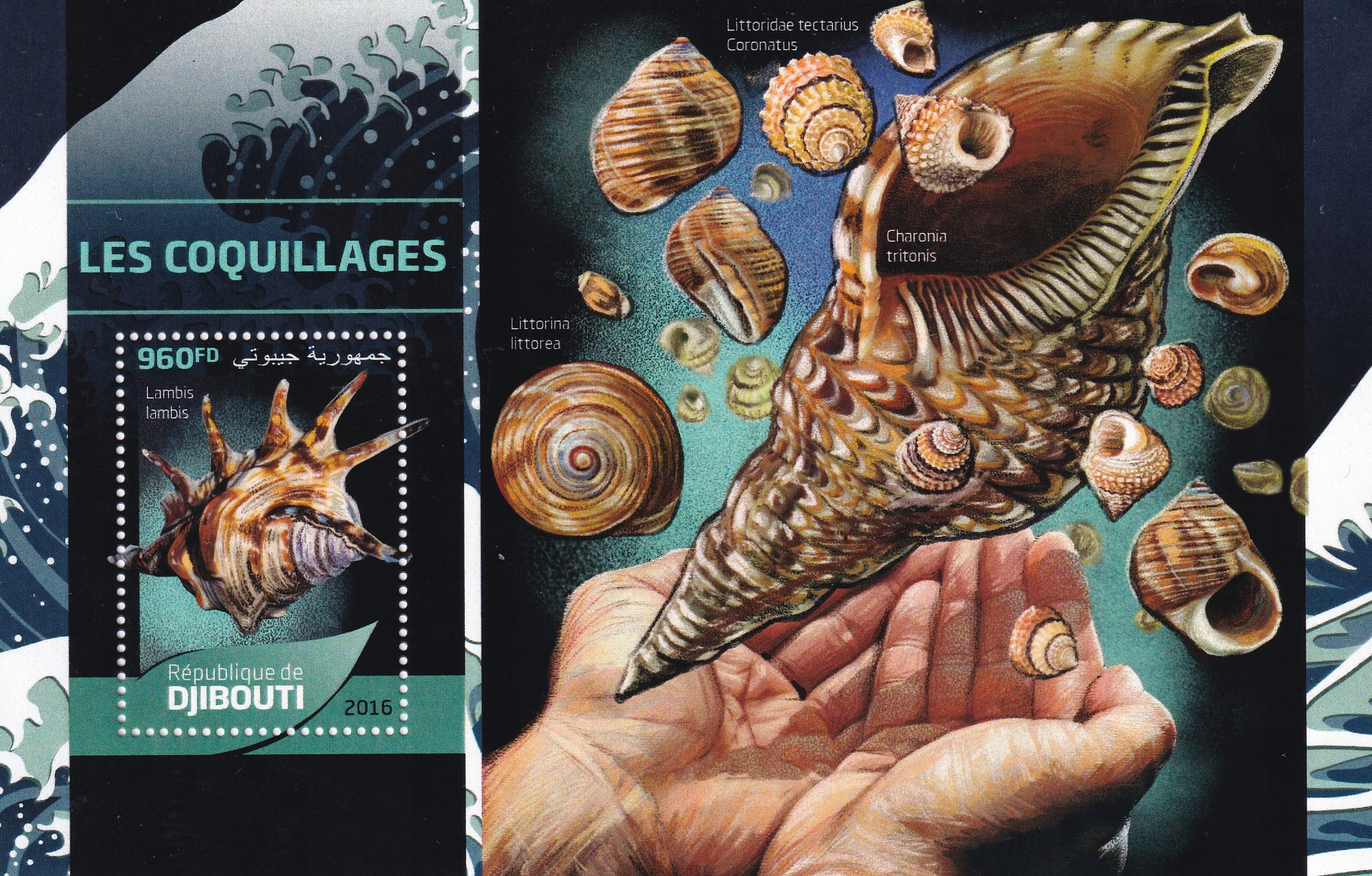 Dżibuti 2016 ** cena 8,90 zł kat.7,50€ (4)- muszle, blok