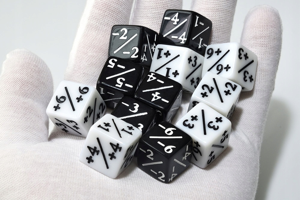 - Стандартные наборы (7 шт), специальные наборы (9 шт дополнительные d10) и увеличенные наборы (10 шт дополнительные d10, d24 и d30)