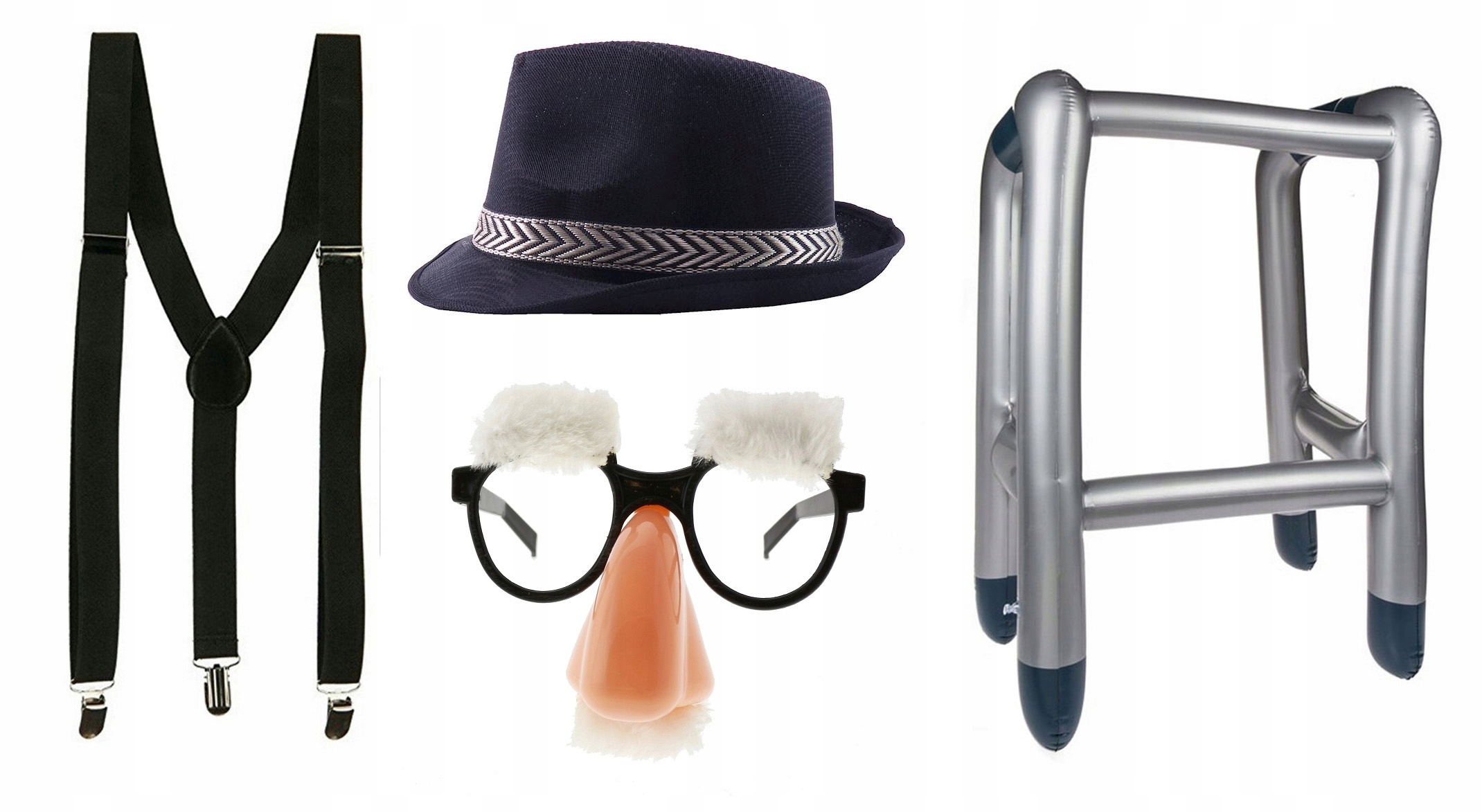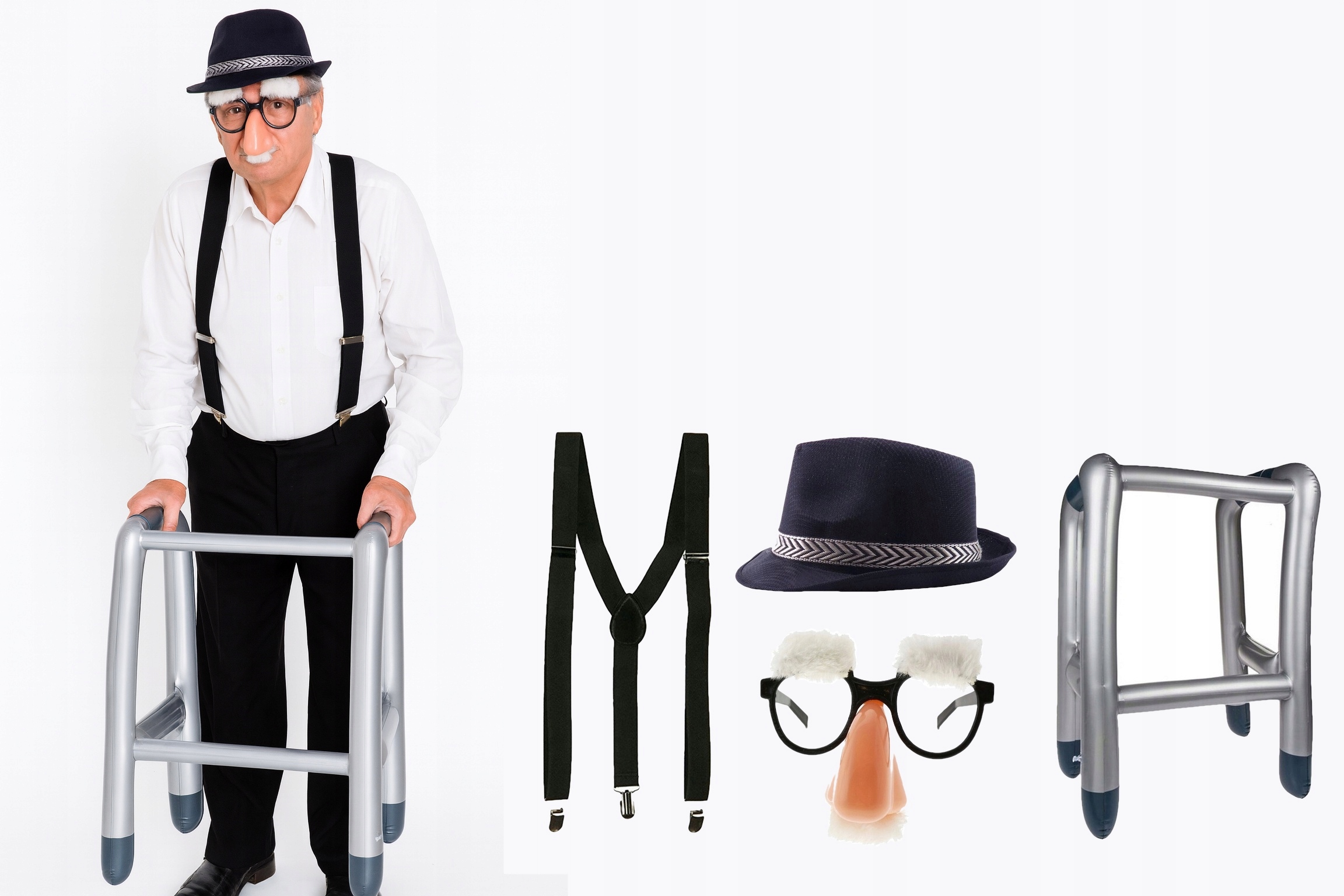 НАряд ДЕДУШИ, НАДУВНАЯ ШАПКА, БАЛКОН, ОЧКИ, СЕДЫЕ Усы, БРОВИ, ПОДДЕРЖКИ.