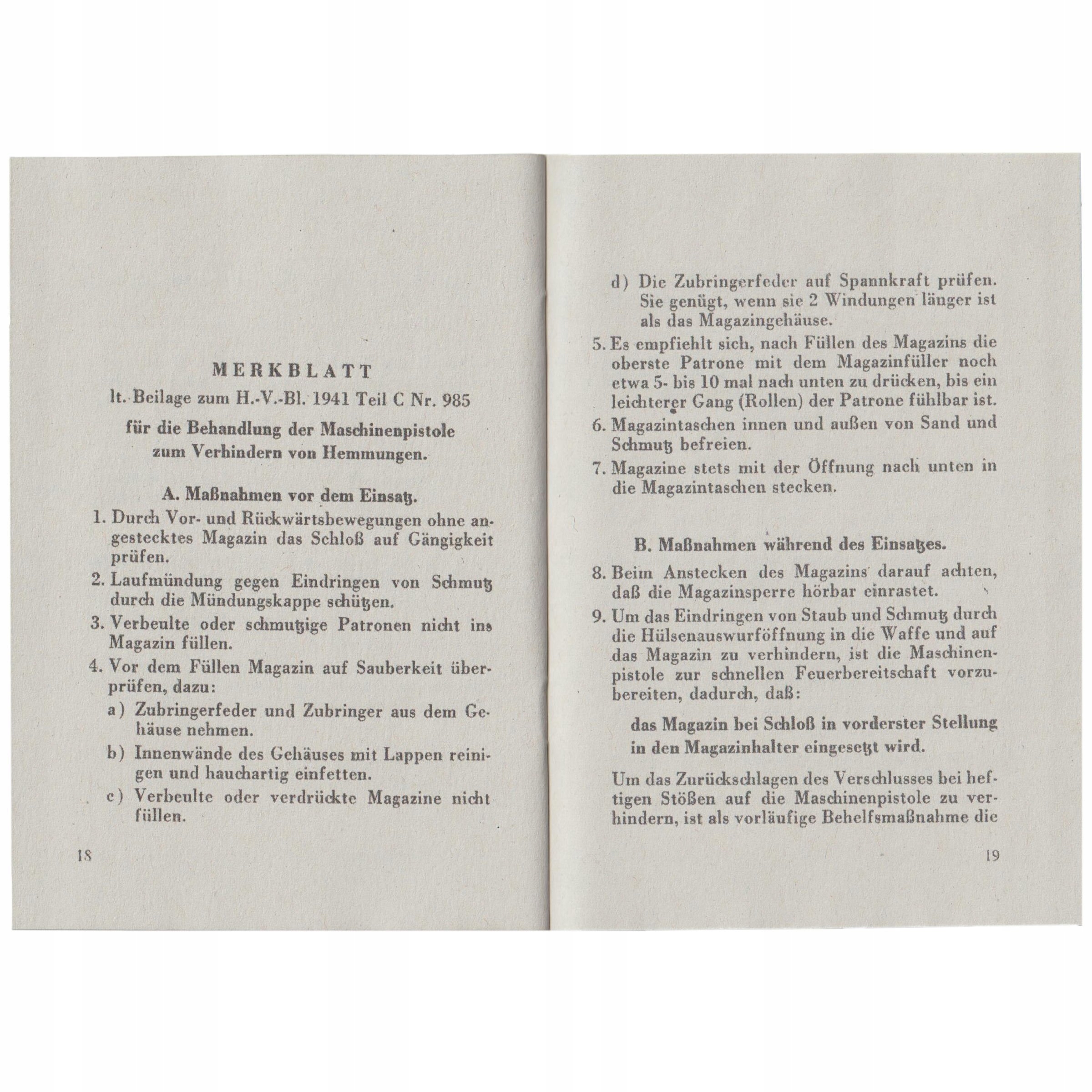 Die Maschinenpistole 40 Beschreibung und Handhabung выдавались солдатам, использующим пистолеты-пулеметы MP40, которые были основными пистолетами-пулеметами немецкой армии во время Второй мировой войны.