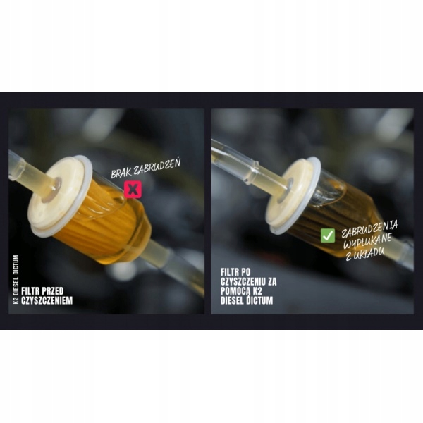 K2 Diesel Dictum полностью безопасен для всех элементов, таких как : топливный насос, турбокомпрессор, клапан EGR, DPF-фильтр, каталитический нейтрализатор и топливопроводы.