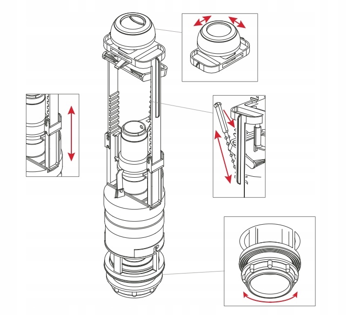 клапан универсален и, следовательно, совместим с большинством типов цизахов, таких как Roca, Cersanit, Koło, Armatura и т. Д. отверстие 61-71 мм .