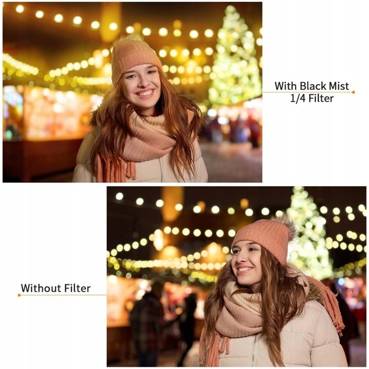 Туманные фильтры обеспечивают тонкое и привлекательное размытие изображения, в слегка пастельных тонах, что придает ему более органичный вид аналоговой пленки. Диффузионный фильтр немного снижает контрастность кадра и создает мягкое свечение вокруг источников света. В результате его использования тональный диапазон становится шире, а переходы между темными и светлыми частями изображения более плавными.