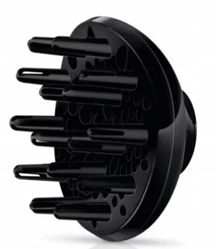 Диффузор для фена Philips Thermo Protect черного цвета — идеальный выбор, если вам нужно уложить волосы кудрями или волнами. Изготовленный из качественных материалов, оригинальный и надежный, сменный диффузор фена Philips пригодится для повседневной или эпизодической укладки волос в сумасшедшие прически, которые подойдут как на каждый день, так и для особых случаев.